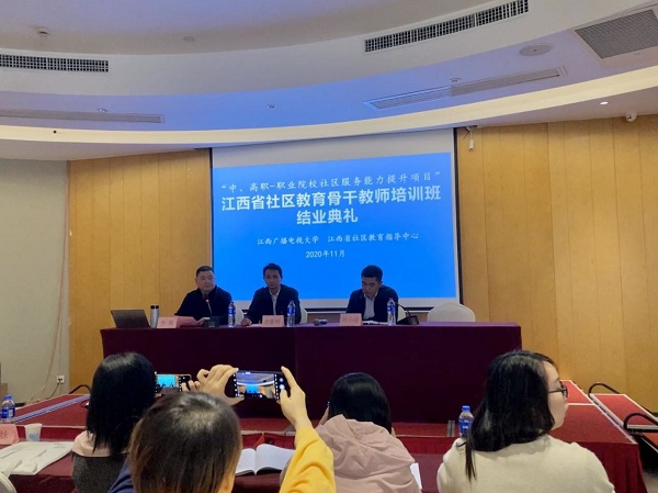 1115日,由我校承办的国培项目“江西省社区教育骨干教师培训班”在南昌圆满结束。江西广播电视大学社会教育学院院长余歙峰,副院长李强、但小澍出席结业仪式,来自全省各地市、县、区108名学员参加会议。仪式由但小澍主持。