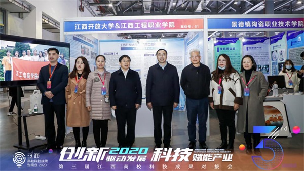 1211日,以“创新驱动发展 科技赋能产业”为主题的第三届江西高校科技成果对接会在南昌绿地国际博览中心开幕。省委常委施小琳,省人大常委会党组副书记、副主任朱虹,副省长孙菊生,省政协副主席汤建人等领导出席会议。会议由江西省教育厅厅长郭杰忠主持。校长黄平槐带领科研处处长张明学工处处长吴平如,教务处处长曾九江高职学院院长李汉平等人参会。