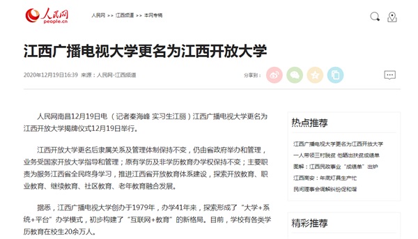 人民网:江西广播电视大学更名为澳门威威尼斯8040
