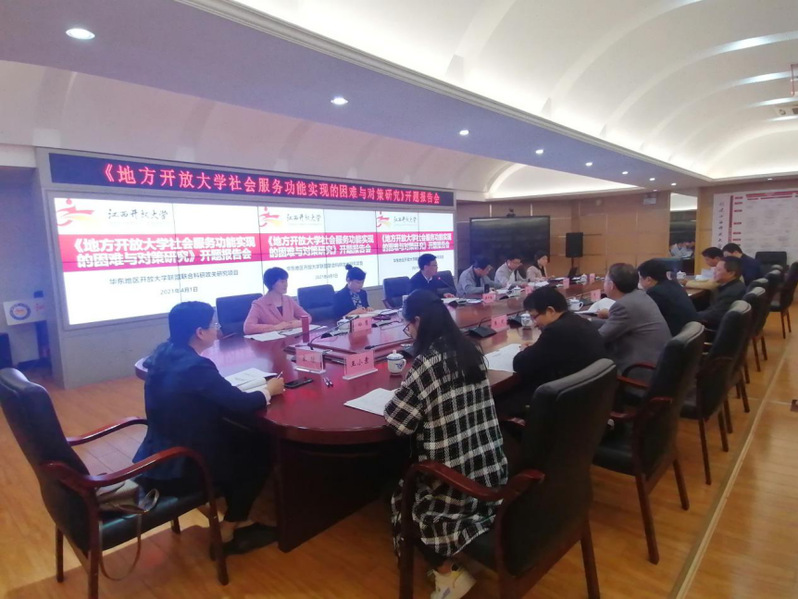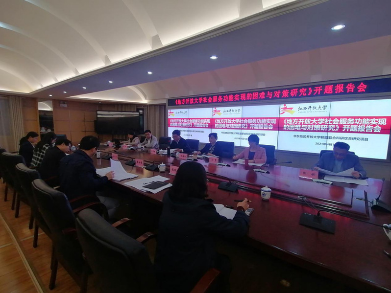 4月1日,由我校校长黄平槐教授主持的华东地区开放大学联盟联合科研攻关研究项目“地方开放大学社会服务功能实现的困难与对策研究”开题报告会在我校青山湖校区行政楼3楼多功能厅会议室举行。5位专家组专家和11位课题组成员参加了会议。