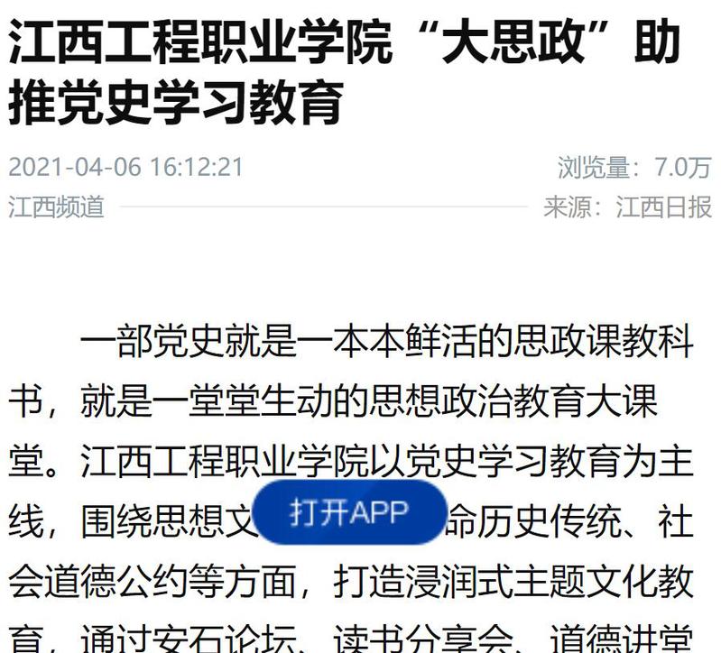 新华社、学习强国、江西新闻客户端等媒体报道我校高职学院“大思政”助推党史学习教育