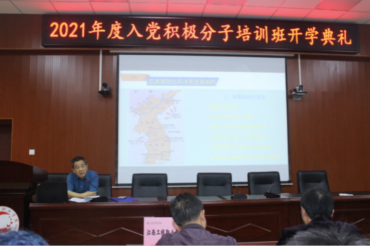 5月17日下午,校党委委员副校长邱东升以“抗美援朝是一场伟大战争”为主题,给2021年度入党积极分子培训班开讲第一课。工程职院党委副书记汪荣林、各党支部书记、入党积极分子参加。学习会由院党委书记杨近铬主持。