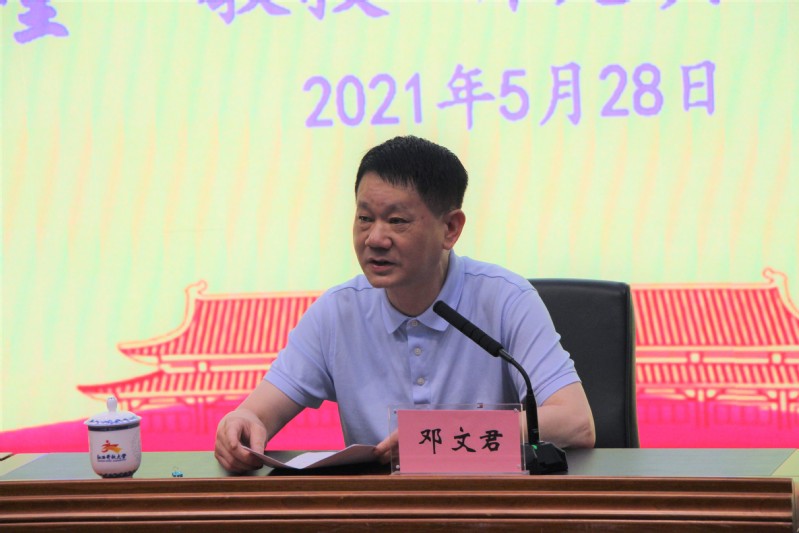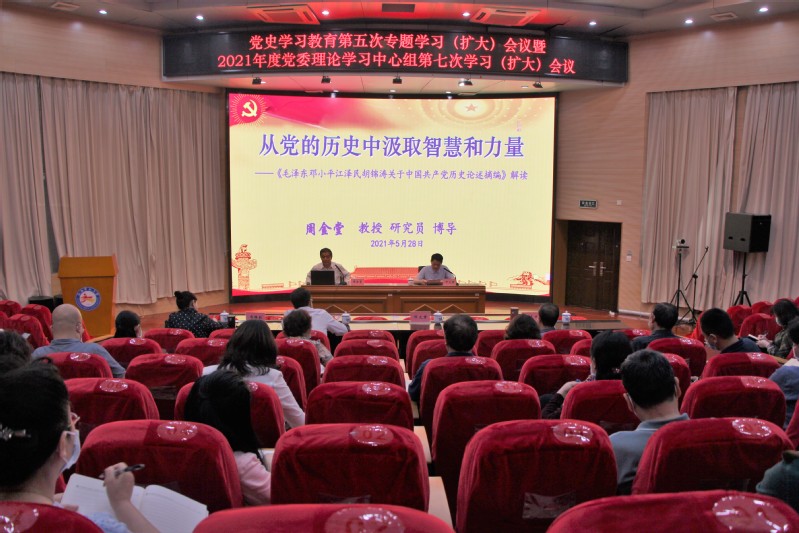 5月28日,澳门威威尼斯8040召开党史学习教育第五次专题学习(扩大)会议暨2021年度党委理论学习中心组第七次学习(扩大)会议,特邀南昌职业大学校长周金堂教授作专题辅导。在家校领导、副处级以上干部参加会议。会议由校党委副书记邓文君主持。