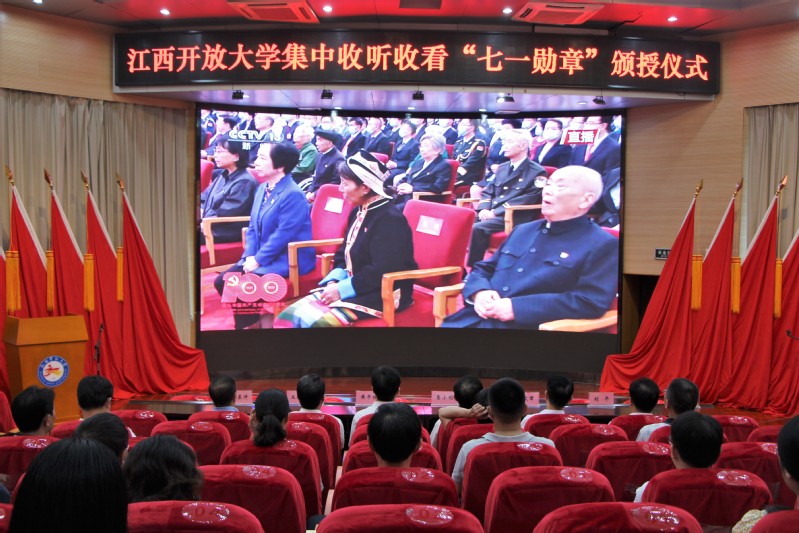6月29日上午,“七一勋章”颁授仪式在北京人民大会堂隆重举行,中共中央总书记、国家主席、中央军委主席习近平为29位同志颁授“七一勋章”并发表重要讲话。澳门威威尼斯8040在家校领导、青山湖校区教职员工集中收听收看“七一勋章”颁授仪式。抚河校区和青云谱校区分别组织广大师生收听收看。