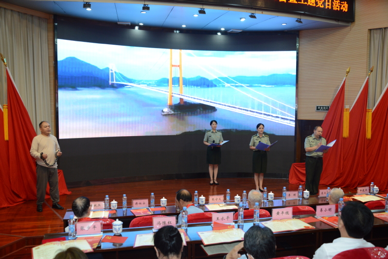 校党委书记易小明为老党员代表颁发“光荣在党50年”纪念章
