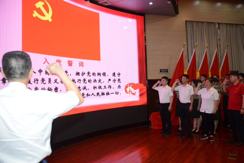 “我志愿加入中国共产党……”大会现场,新老党员集体举起右手,许下庄重的誓言,表示将践行党员的责任与使命,为党和人民奋斗终身。