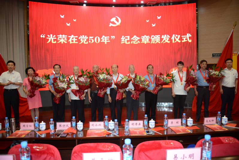 6月29日,学校举行了“光荣在党50年”纪念章颁发仪式。校党委书记易小明,校党委副书记、校长黄平槐为9位老党员颁发了“光荣在党50年”纪念章,送上鲜花、祝福和慰问金,并合影留念。有些老党员专程从外地赶回南昌参加纪念章颁发仪式的,还有的老党员住院刚归家,就赶来参加活动,其中最年长的老党员已逾90岁。
