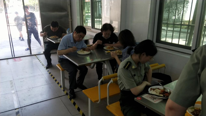 在食堂,检查组一行详细询问了食品原材料采购、供货渠道、质量检测等安全保障措施及相关工作管理制度,对食堂的清洁卫生、厨房设施、就餐环境、库房管理等进行了细致检查,并与学生一起共进午餐,全方位体验人武学院学生食堂管理服务保障的方方面面。