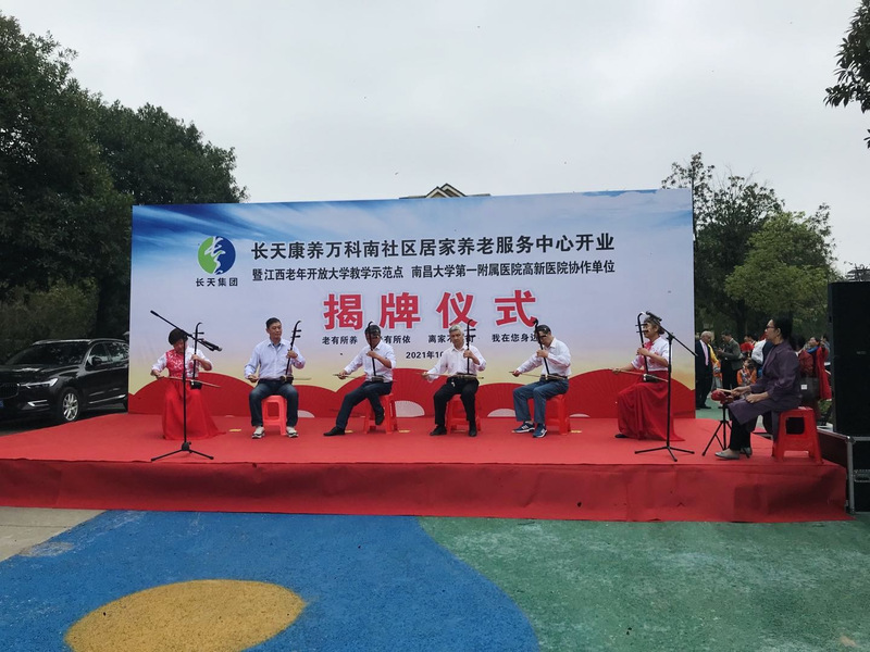 揭牌仪式结束后,冯豫红一行与长天集团领导参观了养老中心的教学设施情况与环境,进一步明确了双方今后合作的工作方向。在仪式现场,学校老年开放大学二胡班老师带领优秀学员进行了教学成果展演,深受社区居民喜爱,体现了学校老年学员良好的精神风貌及教学质量。