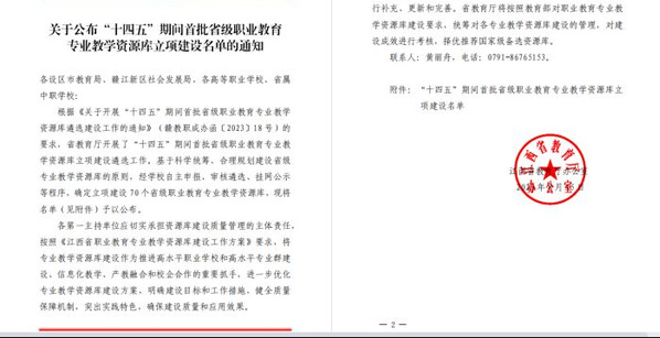 日前,江西省教育厅发布“十四五”期间首批省级职业教育专业教学资源库遴选结果公示,70个项目获批立项建设。其中,我校数字经济学院祝维亮教授主持的“农村电子商务教学资源库”项目获批立项,这也是我校第一个省级教学资源库立项项目。