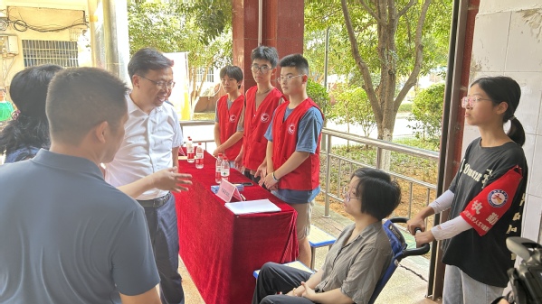 刚走入迎新报到处,黄平槐就遇上了一位特殊的学生——坐着轮椅的华毓婷。黄平槐仔细询问了她的个人状况,并与新生家长进行了交流。“伟大的母亲培养出了优秀的孩子,学校将接过接力棒,服务好华同学的学习与生活,请你放心。”在了解到华同学因病从小学开始一直是由妈妈陪读后,黄平槐特别叮嘱学院要做好相关帮扶工作,为她的学习成长提供优质的教育资源,营造良好的生活环境,助华同学顺利完成学业。