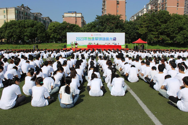 军训动员大会在嘹亮的军歌声中落下帷幕,2023级新生也开启了军训“第一课”。(供稿:宣传部、人文与健康学院 编辑:罗楚颖 责编:张明)