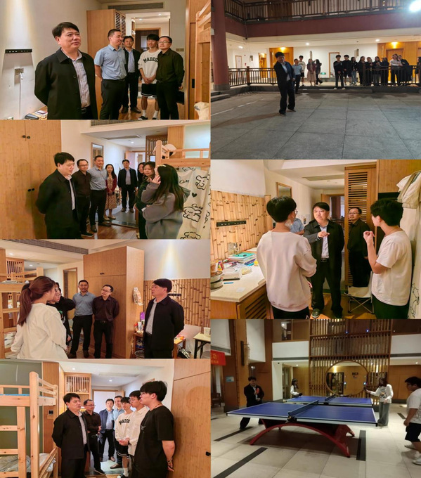 对于学生的餐饮和住宿环境,贺瑞虎一直都非常关心,专程走访了基地食堂,调研食堂环境和用餐情况,同时利用晚上休息时间到学生宿舍走访,询问大家的生活情况,倾听同学们生活的感受。同学们纷纷表示食堂的伙食不错,基地环境很好。期间,贺瑞虎看到同学们在打乒乓球、羽毛球,兴致勃勃地参与到其中,与同学们现场竞技,赢得同学们的阵阵喝彩。贺瑞虎嘱咐同学们要将学习和运动结合起来,健康的体魄才能成就更美好的未来。(供稿:数字经济学院 编辑:梅莲 责编:张睿)
