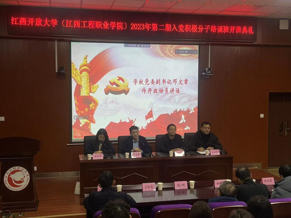 11月14日上午,学校2023年第二期入党积极分子培训班开班式在西湖校区举行。校党委副书记邓文君出席开班式并作动员讲话,党委委员、组织人事部部长熊江鹏,党委委员、宣传部部长张明和机关党委、基层党校、智能技术学院、数字经济学院、城乡发展学院、马克思主义学院负责人,同师生入党积极分子参加开班仪式。