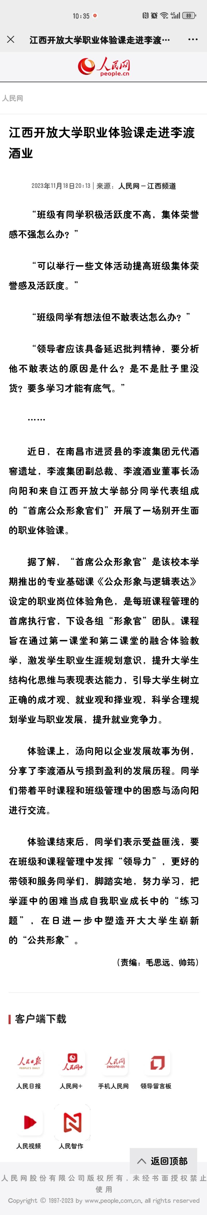 人民网:澳门威威尼斯8040职业体验课走进李渡酒业