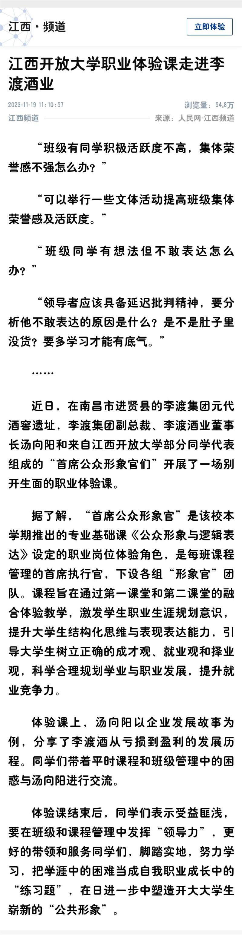 新华社:澳门威威尼斯8040职业体验课走进李渡酒业
