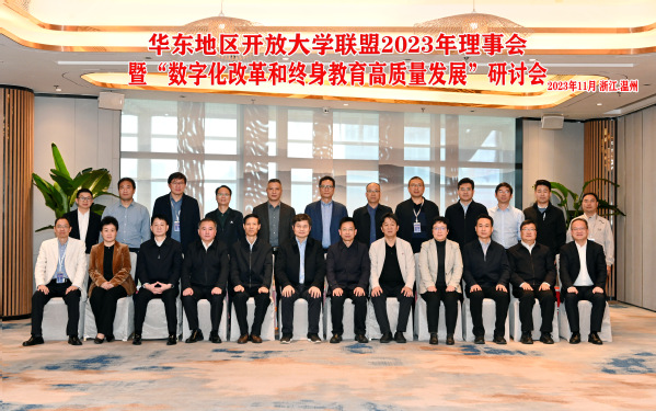 11月23日至24日,华东地区开放大学联盟理事会2023年会议暨数字化改革与终身教育高质量发展研讨会在温州召开。联盟理事会成员单位围绕“数字化改革与终身教育高质量发展”主题,就深入落实国家教育数字化战略行动,交流研讨数字化改革特色、成效以及未来的发展规划,一致认为要深入贯彻习近平总书记重要讲话和重要指示批示精神,以数字化变革为抓手,更加自觉地融入国家、地方发展战略,秉持“服务基层需要,关注弱势群体,促进教育公平”的核心价值观,努力打造成为老百姓家门口的大学,为有需要的人提供合适的教育和充足的资源。