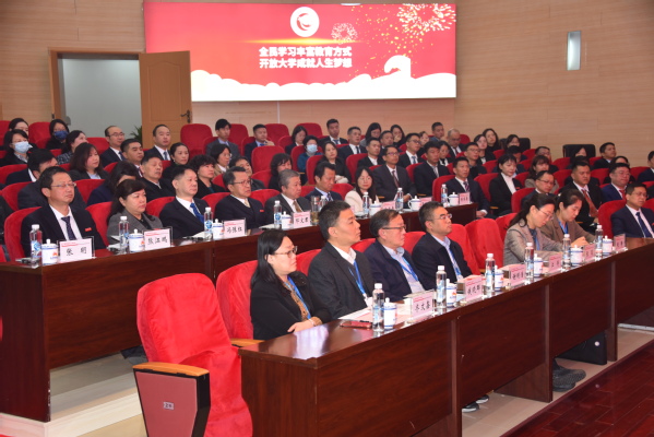 江西省教育厅二级巡视员雷杰华,国家开放大学分部办学评估专家组全体专家出席。学校全体领导班子成员、学校副处级以上干部、正高职称人员、整改工作组全体人员、评估办全体人员、开放教育专业责任教师、继续教育学院副科级以上干部、产业人才与乡村振兴学院代表等150余人参会。会议由国家开放大学分部办学评估专家组副组长厉毅主持。校党委书记贺瑞虎作表态发言。全省开放大学体系通过线上同频收听收看。