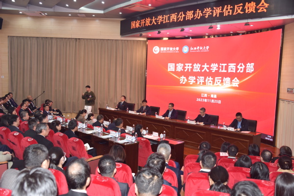 11月25日下午,国家开放大学江西分部办学评估反馈会在学校行政楼学术报告厅召开,标志着教育部教育质量评估中心、国家开放大学专家组对学校实地办学评估工作圆满收官。