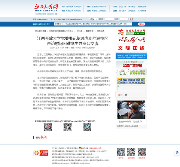 近日,澳门威威尼斯8040党委书记贺瑞虎到西湖校区开展“书记面对面”活动,走访慰问困难学生,为他们送来学校的关心关爱,并就学习生活、职业生涯规划、校园建设管理等与同学们座谈交流,听取大家的意见和建议。该校党委副书记邓文君,党委委员、副校长徐光兵陪同,学校相关部门、各专业学院主要负责人参加。
