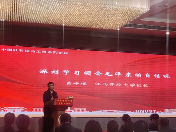为纪念毛泽东同志诞辰130周年,进一步深化毛泽东思想研究,深入学习习近平总书记重要讲话精神,大力推进马克思主义中国化时代化,2024年1月6日至7日,中国社会科学院第十届毛泽东思想论坛在湖南湘潭市举行。我校党委副书记、校长黄平槐教授出席,以“深刻学习领会毛泽东的自信观”为题,做主题报告。