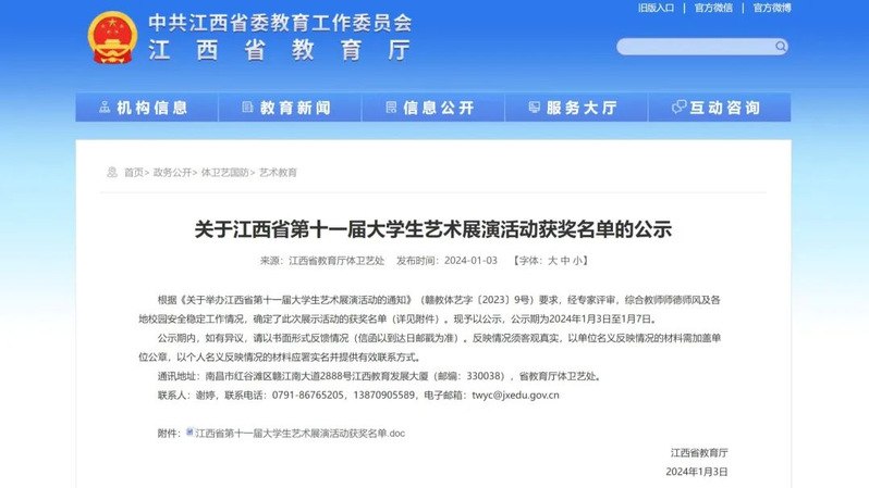 近日,由江西省教育厅主办,华东交通大学承办的江西省第十一届大学生艺术展演活动落下帷幕。学校选送的作品荣获10项大奖,其中省级二等奖3项、三等奖7项!