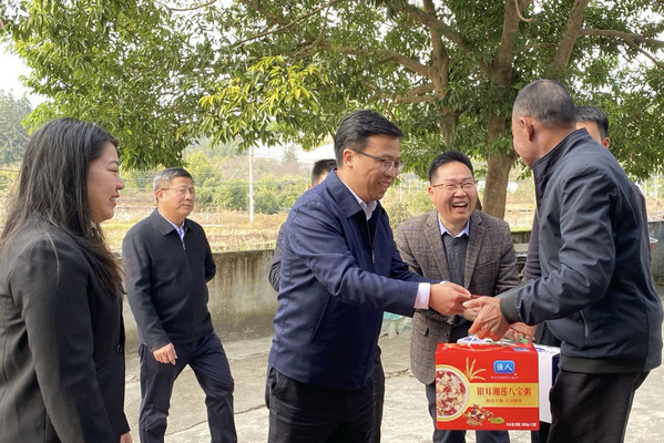 调研中,黄平槐听取了学校2个驻村工作队的工作汇报,了解他们驻村履职尽责和生活情况,实地查看了上甲村新时代文明实践站、鹰嘴桃产业基地、全国重点生态功能区“山水林田湖草生命共同体”示范项目基地以及横市镇万林油茶基地、乡村振兴消费馆。走访慰问村中困难群众时,黄平槐详细了解他们的生活生产情况和困难原因,向他们致以新年的问候和祝福,并代表学校送上慰问金和慰问品,鼓励他们坚定信心,相信在党委、政府的帮助下,日子会越来越好。