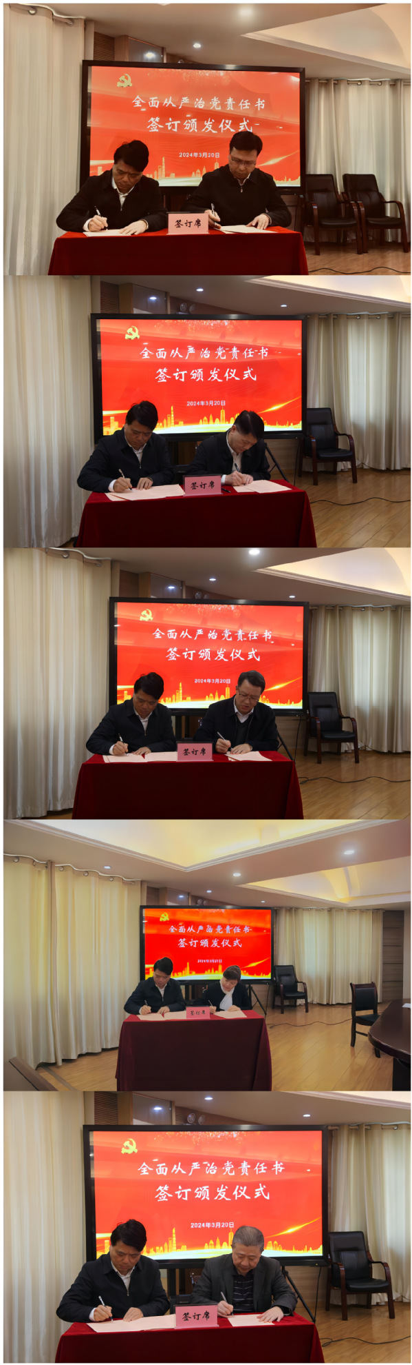 会议举行了全面从严治党责任书签订颁发仪式,贺瑞虎与党委班子成员、二级学院党政主要负责人,分管校领导与部门(单位)主要负责人分别签订并颁发了全面从严治党责任书。(供稿:纪委综合办公室 编辑:梅莲 责编:张明)