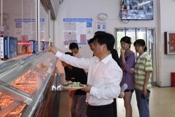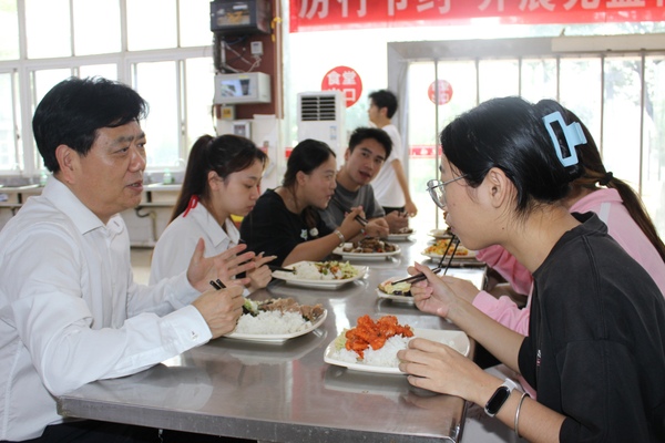 调研期间,贺瑞虎实地查看学生餐厅经营情况和饭菜质量深入一线与同学共进午餐,倾听学生诉求,解决大家学习中遇到的问题。