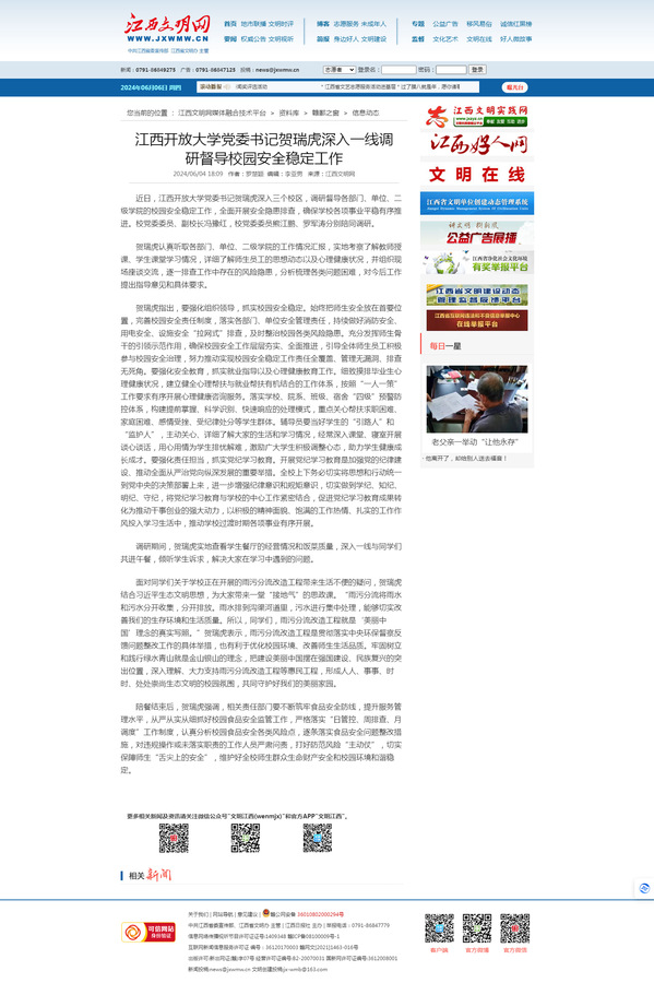 近日,澳门威威尼斯8040党委书记贺瑞虎深入三个校区,调研督导各部门、单位、二级学院的校园安全稳定工作,全面开展安全隐患排查,确保学校各项事业平稳有序推进。校党委委员、副校长冯豫红,校党委委员熊江鹏、罗军涛分别陪同调研。