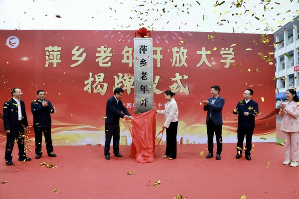 黄平槐、朱艳珍共同为萍乡老年开放大学揭牌。黄平槐代表学校对萍乡老年开放大学的成立表示热烈祝贺。他指出,萍乡开放大学及其开创的“萍乡模式”,一直都是全省开放教育的一扇窗口、一张名片。希望萍乡老年开放大学结合实际,贯彻落实好“老年教育的主渠道、主动健康的强引擎、银发经济的催化剂”的总部目标和“做实老年教育”分部要求,把握“大学”的基本要义,紧扣老年学员的基本需求,遵循老年教育的基本规律,塑造老年教育的“萍乡模式”,把萍乡老年开放大学也建设成为国家老年大学(江西)的一扇窗口、一张名片。