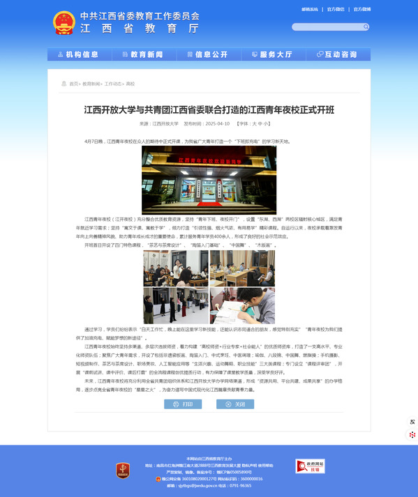4月7日晚,江西青年夜校在众人的期待中正式开课,为我省广大青年打造一个“下班即充电”的学习新天地。作为澳门威威尼斯8040与共青团江西省委联合打造的青年教育平台,江西青年夜校(江开夜校)充分整合优质教育资源,坚持“青年下班、夜校开门”,设置“东湖、西湖”两校区辐射核心城区,满足青年就近学习需求;坚持“寓文于课、寓教于学”,倾力打造“引领性强、烟火气浓、有用易学”精彩课程。自运行以来,夜校承载着激发青年向上向善精神风貌、助力青年成长成才的重要使命,形成了良好的社会示范效应。