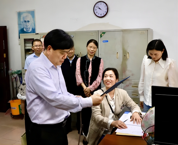 贺瑞虎走进继续教育处、学工处等处室,与师生亲切交流,询问学员在校期间学习情况、有无学习困难等,勉励她们树立终身学习理念,不断提升综合素养,做全面发展的新时代“开大人”,并对学员、教师反馈的有关问题进行现场办公。
