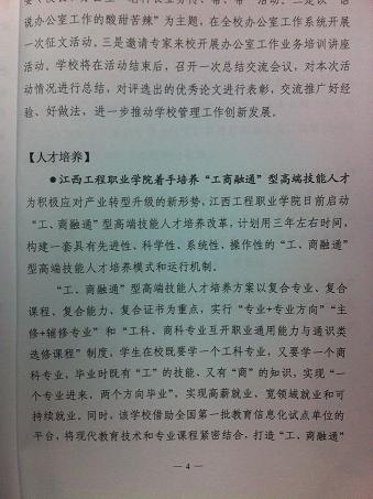 2013)第20期刊发“江西工程职业学院着手培养“工商•融通”型高端技能人才”。