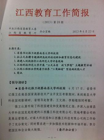江西省委教育工委、江西教育厅工作简报推介我院“工商•融通”人才培养模式