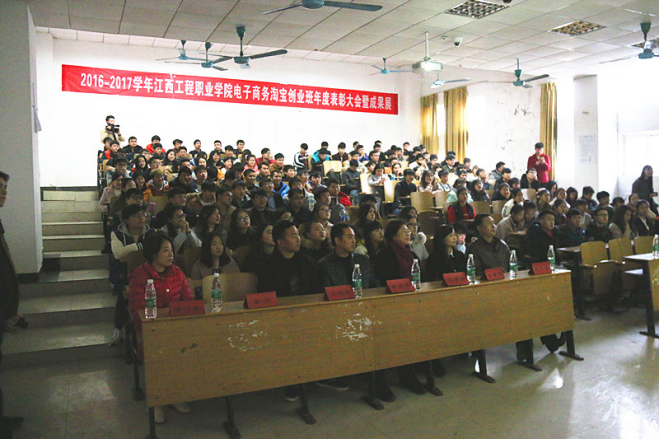 12月29日下午,电商学院举行了2016-2017学年电子商务淘宝创业班年度表彰大会暨成果展。江西工程职业学院院长杨近铬,江西淘鑫电子商务有限公司董事长张耀华,江西工程职业学院常务副院长吴丽华以及电商学院负责人参加表彰大会。
