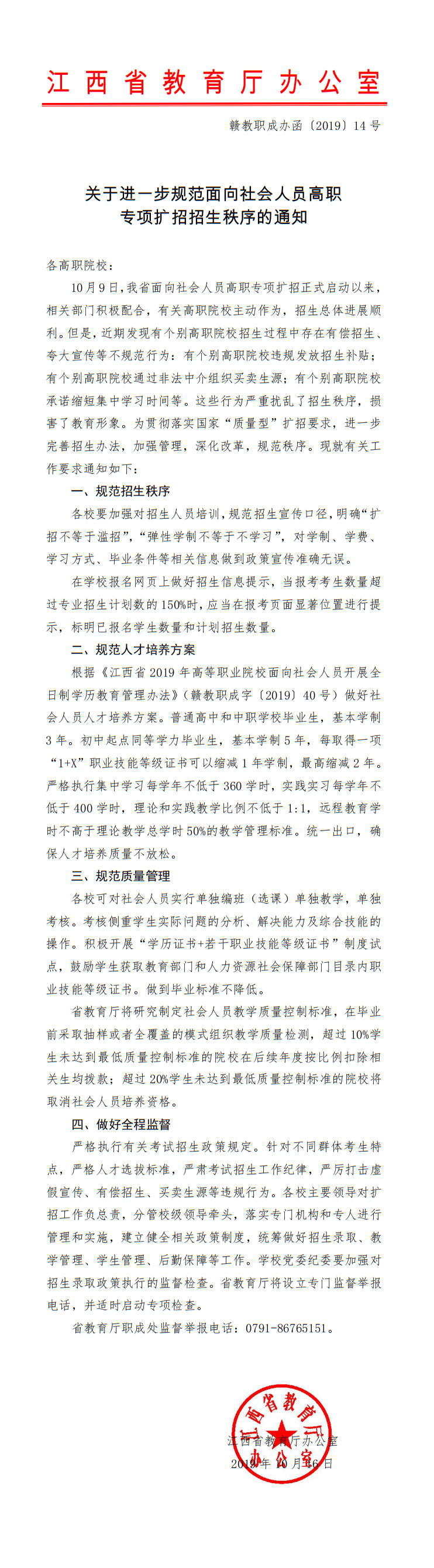 关于进一步规范面向社会人员高职专项扩招招生秩序的通知