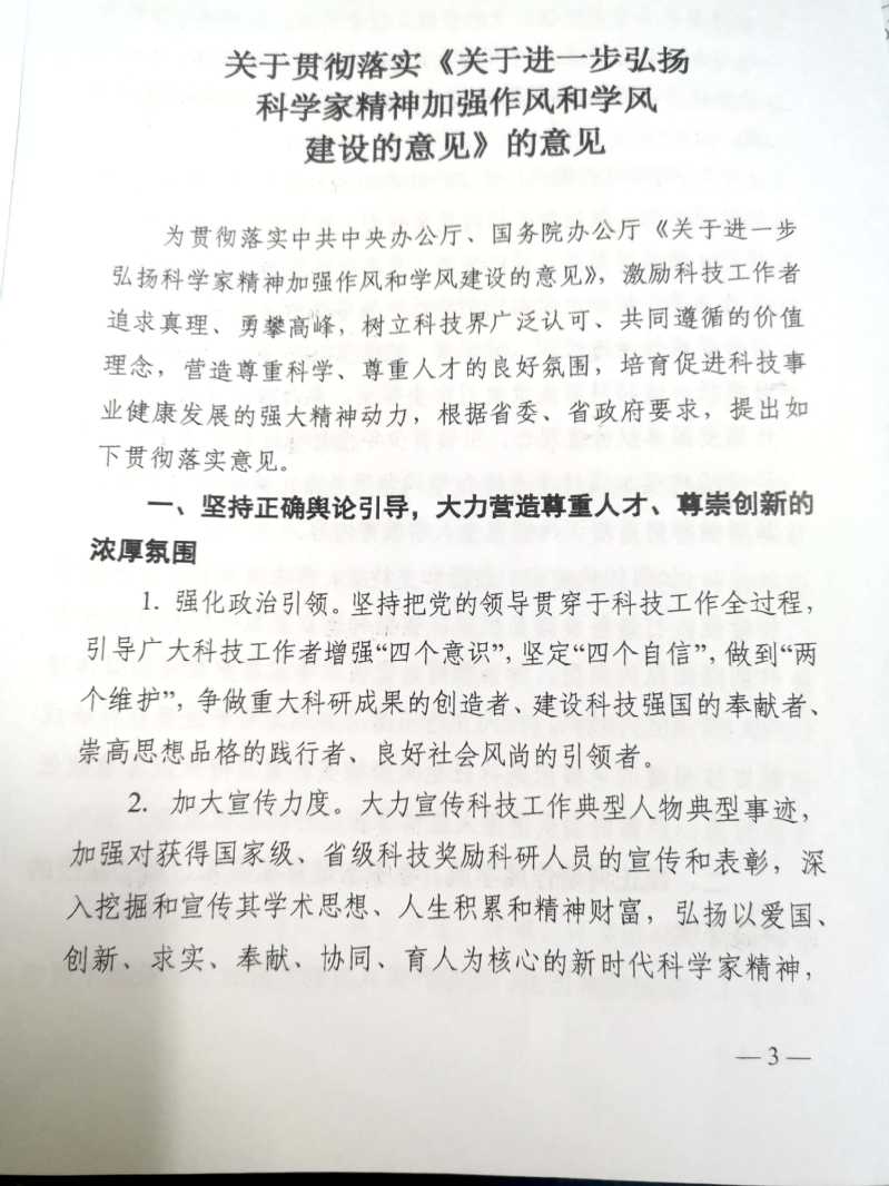 关于印发《关于贯彻落实<关于进一步弘扬科学家精神加强作风和学风建设的意见>的意见》的通知