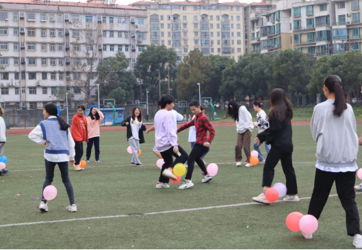 本次素质拓展以趣味运动的形式展开,包括“动力火车”、“一元五毛”、“踩气球”、“五人六足跑”及“击鼓传花”等五项团体活动。青马班五个小组以组为单位,在主持人的指挥下有序参与游戏,小组间相互比拼、相互竞技,现场气氛轻松活跃。
