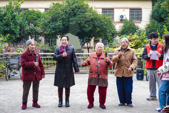同学们为老人们精心准备了一场小型文艺汇演,节目形式丰富多样,有唱歌、舞蹈、小品等。在演出活动中老人们亲切互动,全体老人都沉浸在浓厚的和谐氛围中。