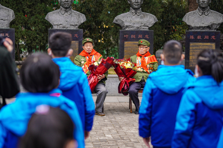 接着,张倩老师带领部分学生前往南昌新四军军部旧址陈列馆开展主题教育活动。全体同学朗诵《南京大屠杀公祭文》,并为死难同胞默哀。同学们认真聆听两位新四军老战士讲述日本军国主义在侵华战争中,对中国百姓犯下的滔天罪行,和他们亲历的那段不可忘却的回忆。随后,大家参观陈列馆,深刻了解那段屈辱的历史及设立“国家公祭日”的内涵。