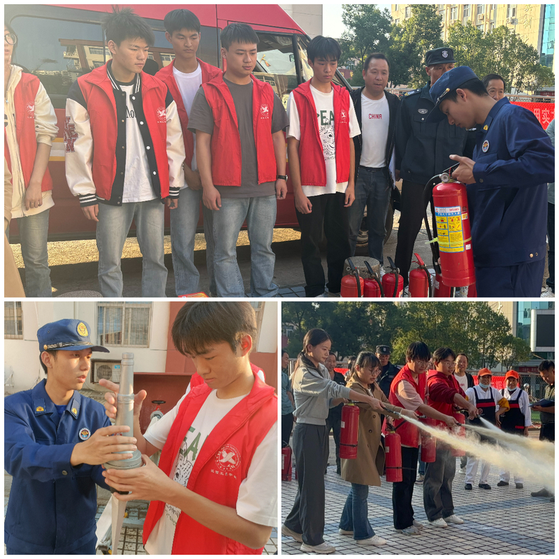 活动现场,进贤县消防救援大队专业的消防警员,从灭火器的构造原理到消防栓的正确操作步骤进行讲解;随后,进入真操实训环节,志愿者和教师代表率先上阵,他们按照“提、拔、握、压”的要领,拿起灭火器对准熊熊燃烧的模拟火点果断出击;其他参训人员熟练地操作起消防栓,连接水带、打开阀门,动作一气呵成,强大的水流如银龙般冲向火点。消防警员在旁对操作过程中出现的问题及时纠正、提示,圆满完成了本次培训活动。