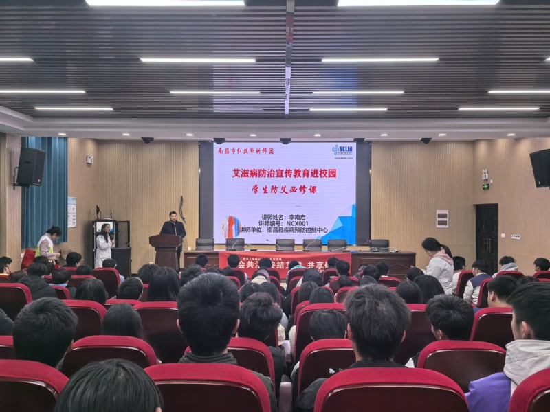 为进一步提升学生群体对艾滋病的防控水平,增强学生自我保护意识,在第37个 “世界艾滋病日” 来临之际,我校莲塘校区携手南昌县疾控中心,开展了“防艾护青春 知识筑防线”艾滋病防治专题讲座。本次讲座有幸邀请了南昌市“红丝带讲师团”李南启老师主讲,800余名学生到场聆听。