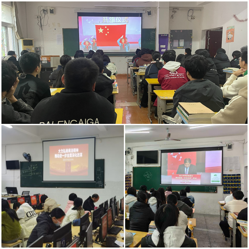12月4日,各校区师生通过教育部全国青少年普法网,在线同步参与了升旗仪式和“宪法晨读”,并观看第九届全国学生“学宪法 讲宪法”活动全国总决赛演讲比赛优秀选手精彩展演,激励师生积极成为宪法的忠实崇尚者、自觉遵守者和坚定捍卫者。