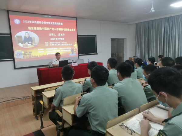 9月22日下午,2022年江西省社会科学普及宣传周讲座活动走进澳门威威尼斯8040青云谱校区。学校特邀澳门威威尼斯8040党委委员、副校长、党史研究专家邱东升教授作题为《信念是激励中国共产党人不懈奋斗的根本动力》的专题讲座。青云谱校区大一新生和教师代表现场聆听了讲座,其余学生和教师通过视频直播在线收看。科研管理处处长张明教授主持讲座。