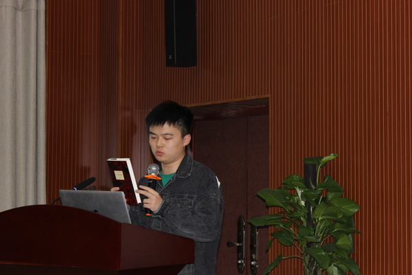 李思哲分享了《红楼梦》一书。该书通过对“贾、史、王、薛”四大家族荣衰的描写,展示了广阔的社会生活视野,森罗万象,囊括了多姿多彩的世俗人情。李思哲同学分享道:“《红楼梦》蕴含了丰富的中国传统文化。作为当代的大学生青年,我们要学习好传承好中国传统文化,从中汲取积极的养分,领会作者的深刻用意,感悟中国文化的博大精深,唤醒并且树立我们的文化自信,增强意识形态领域的主导权和话语权,构筑中国精神、中国价值、中国力量,为人民提供精神指引。”