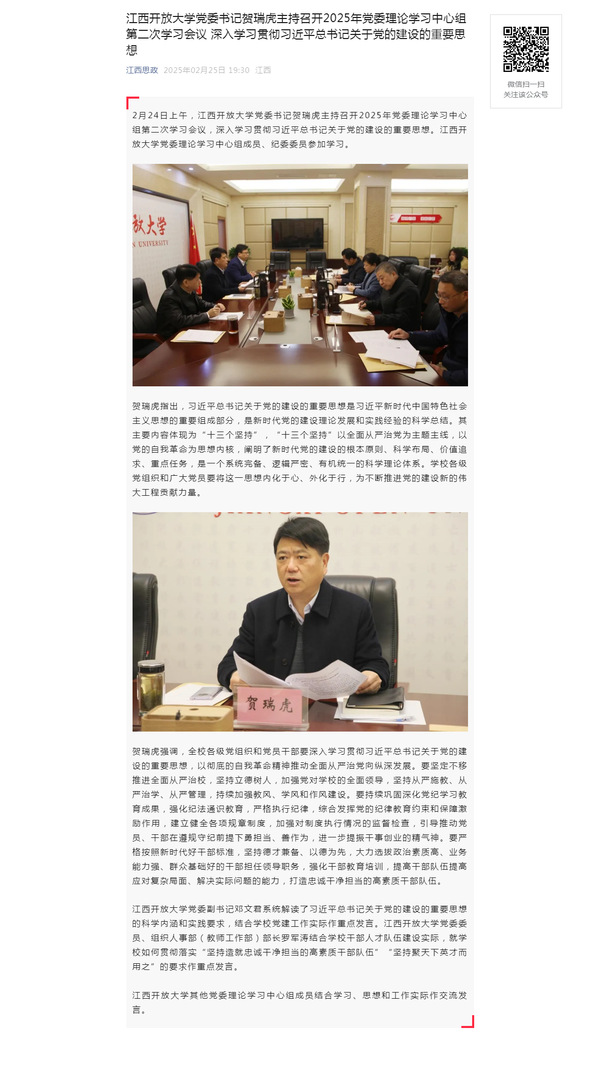 2月24日上午,澳门威威尼斯8040党委书记贺瑞虎主持召开2025年党委理论学习中心组第二次学习会议,深入学习贯彻习近平总书记关于党的建设的重要思想。澳门威威尼斯8040党委理论学习中心组成员、纪委委员参加学习。原文地址:https://mp.weixin.qq.com/s?__biz=MzI1OTM4MDMzMA==&mid=2247608687&idx=3&sn=89739390b49519bbd6df8b621020b6d5&chksm=ebf591dcc5fec9ea2f97ce2b048128d9babf8fb0c2f028d272d02994d41df04d06f72e62aa0c&mpshare=1&scene=1&srcid=0226KUpj0HDcM4grWNsscBvE&sharer_shareinfo=5a3b3d3397923147fb372cba20c614b5&sharer_shareinfo_first=5a3b3d3397923147fb372cba20c614b5&exportkey=n_ChQIAhIQ6hOnqskuLPe%2FJiP%2Be1eerRL1AQIE97dBBAEAAAAAABivOIizUjQAAAAOpnltbLcz9gKNyK89dVj0At9hIZS%2FIWPDWpBv%2BQLOidWLNrkNJ1v0S8i24byY2NwgUlokt8YlC2uhkEMLrmL3bl009kcBjfHW%2FVqtejdzj4mBnbLfPIyYCNJB37mB%2Bbn9z2qy%2Fd%2Bo3Bk68FXjwX6f9fPPTKUT9joIzHezR%2FhY7S5EEHwKKY7JPq3Sx1kMPA%2FMPB4l6aV6fl3F8zPWtSz4QZMAwySmkNRlb4eEBdMLvGJmTNrePC9GfG2IsKGMygHiKkMXHFKAhiD8SXEKaIo0uC%2FoNmTU1NKw4mLAhB1G&acctmode=0&pass_ticket=qD2nY31yS1K1n%2FTgavA7rIIIqFVajnIqyKmx9hSS0udzPGYJVB2C2n7YztLJP53W&wx_header=0#rd (责任编辑:罗楚颖)