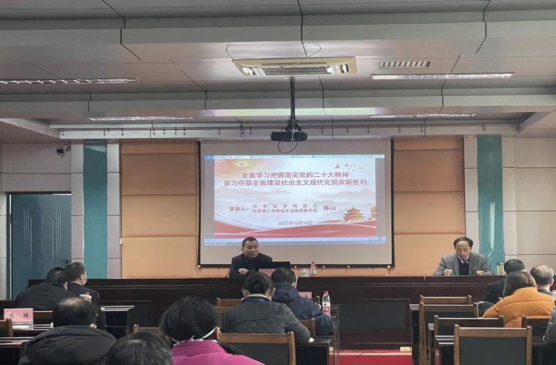 12月16日,市成教中心举行党的二十大精神宣讲报告会,特邀市委宣讲团成员、市委第三巡察组正县级巡察专员陈山作宣讲报告,会议由党委书记梁云森主持。中心领导班子成员,全体教职工、退休支部支委委员、副县级及以上退休干部参加会议。